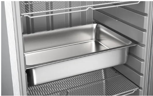 Vďaka cirkulácii vzduchu zabezpečuje rovnomernú teplotu v celom priestore a automatické odmrazovanie minimalizuje potrebu údržby. Robustná konštrukcia z ušľachtilej ocele a vysoká nosnosť políc umožňujú bezpečné skladovanie veľkého množstva potravín.